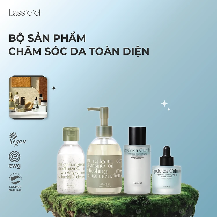 Bộ skincare 4 sản phẩm Lassie’el Hàn Quốc - Chiết xuất từ thiên nhiên, làm sạch, cấp ẩm, ngăn ngừa lão hoá