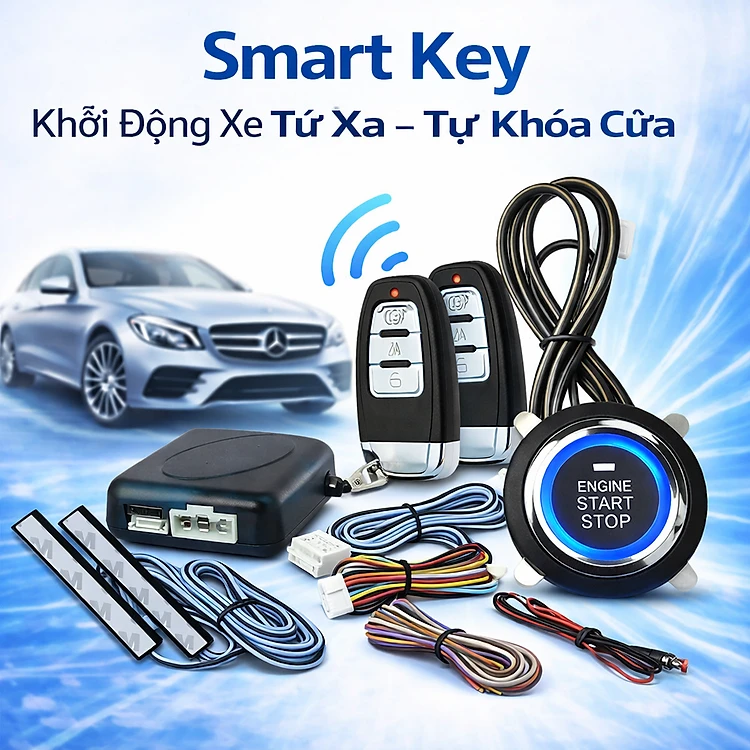 Bộ Smartkey Ô Tô Cao Cấp PKE – Đề Nổ Từ Xa, Tự Động Khóa Mở Cửa Xe Tiện Lợi