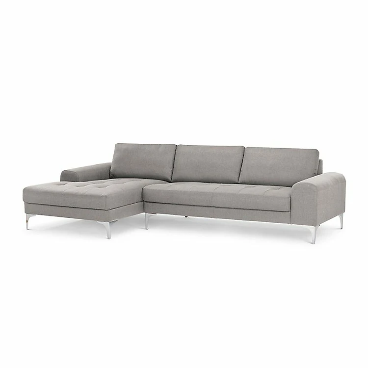 Sofa vải góc L Tundo 310 x 180 x 75 cm kèm ghế lẻ gối trang trí màu xám