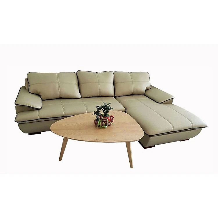 Sofa da góc L Tundo 2m5 x 1m6 màu kem viền