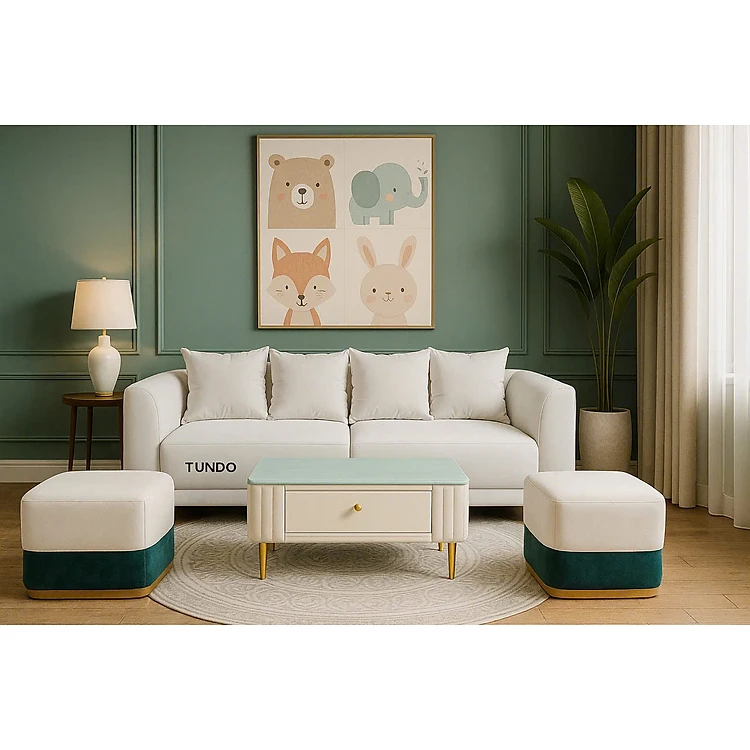 Bộ sofa trắng Tundo Kingdom ghế 2m, 2 đôn và tặng bàn trà.