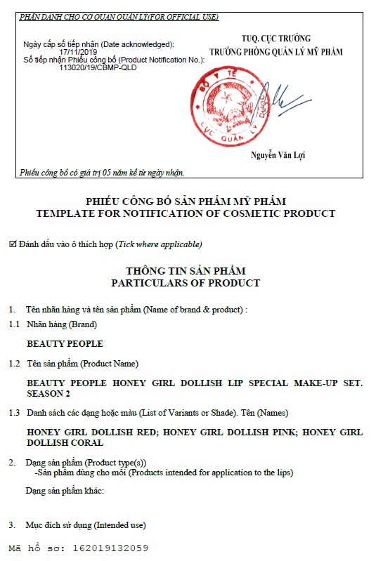 *Sản phẩm đã được chứng nhận từ cơ quan quản lý về chất lượng*