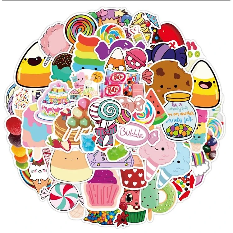 Bộ Sticker - Miến Dán Siêu Kute - Miến Dán Họa Tiết Bánh kẹo candy cute (bộ 50 miếng)