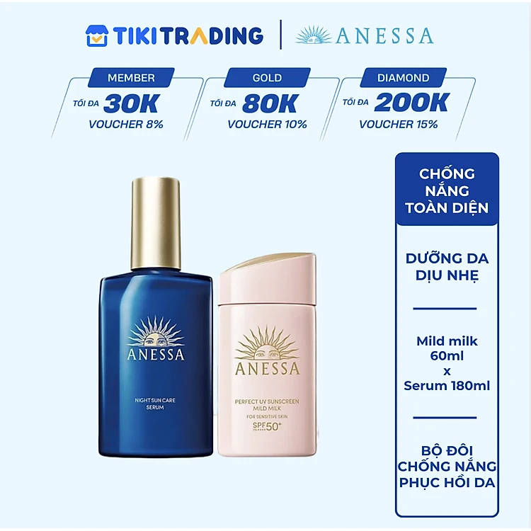 Bộ sữa chống nắng Anessa dưỡng da dịu nhẹ dạng sữa SPF50+ PA++++ 60ml và Serum dưỡng da và phục hồi da sau nắng 180ml
