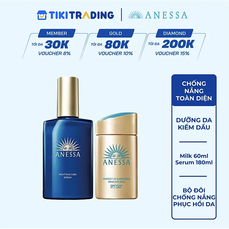 Bộ sữa chống nắng dưỡng da kiềm dầu bảo vệ hoàn hảo SPF50+ PA++++ 60ml và Serum dưỡng da và phục hồi da sau nắng 180ml Anessa