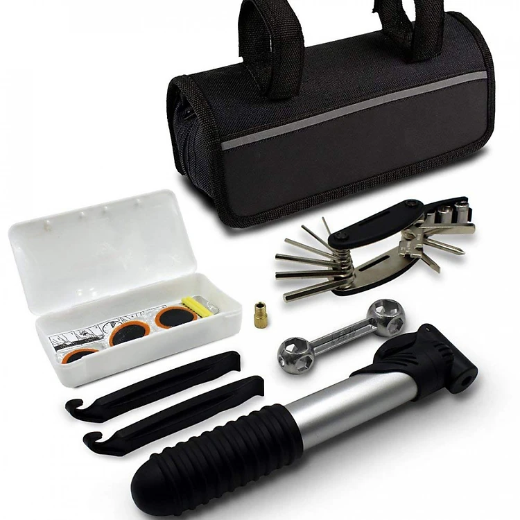 Có dụng cụ bơm vá và dụng cụ sửa chữa cơ bản cho xe máy.