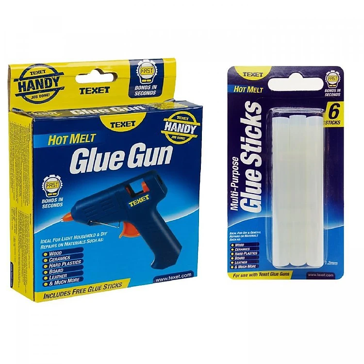 Bộ súng bắn keo TEXET HH-158 và vĩ 06 thanh keo là dụng cụ cần thiết để bạn dán các vật dụng trong gia đình cũng như trang trí các đồ vật handmade thêm đẹp mắt.