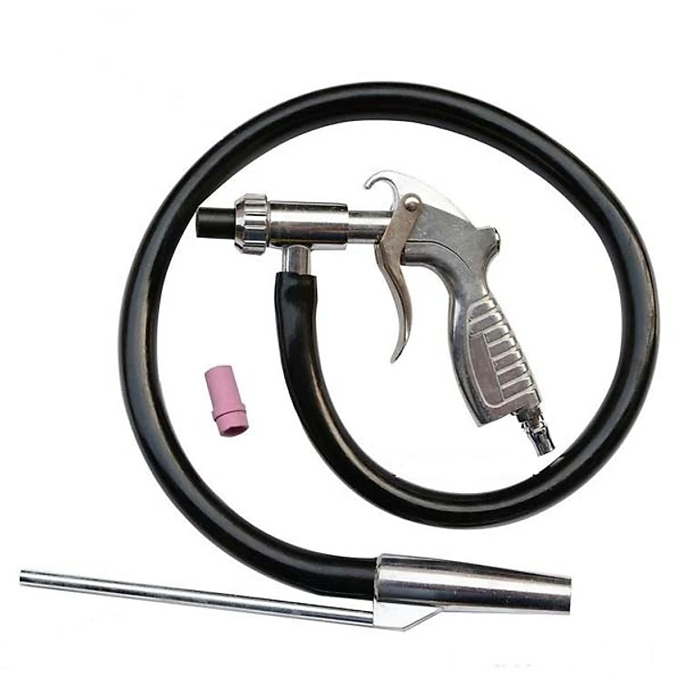 Súng phun cát chỉ dùng các loại cát có trọng lượng nhẹ như nhôm oxide, hạt thủy tinh … hoặc cát xây dựng khô giáo và lọc bỏ sỏi và tạp chất., như vậy máy mới bèn và kéo dài tuổi thọ sử dụng.