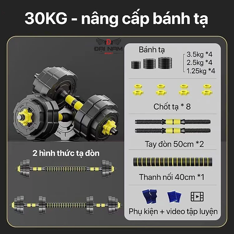 Bộ Tạ Tay Đa Năng (5 In 1) 30kg Kết Hợp Tạ Đơn,Tạ Đòn,Tạ Ấm Đại Nam Sport + Tặng Găng Tay Và Kìm Bóp