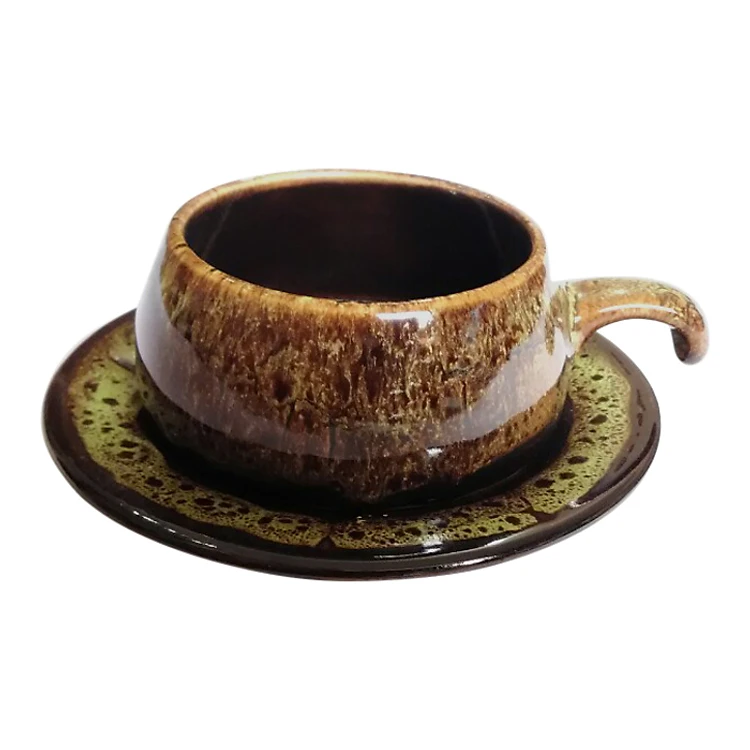 Bộ Tách Coffee Đĩa Lõm - Gốm Sứ Bát Tràng - P06V - Màu Vàng Gấm Gốm sứ nung ở nhiệt độ > 1300 độ C