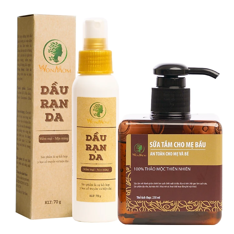 Bộ tắm thảo mộc và chống rạn Wonmom ( 1 Dầu chống rạn + 1 Sữa tắm cho mẹ )