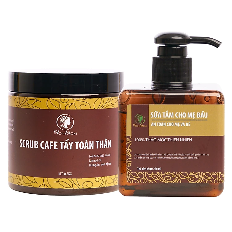 Bộ tắm và tẩy tế bào chết toàn thân Wonmom ( 1 Scrub café tẩy toàn thân + 1 Sữa tắm cho mẹ )