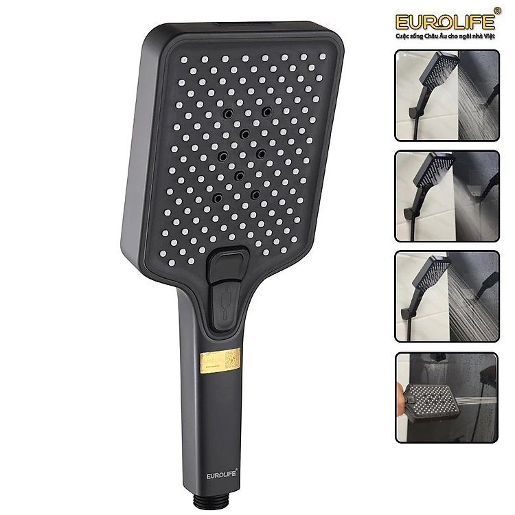 Bộ tay dây sen 4 chức năng chảy, nhựa ABS mạ đen Eurolife EL-126SH-D
