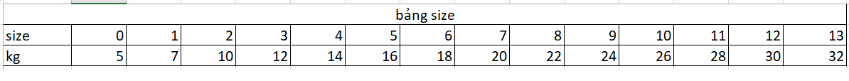 Bảng size