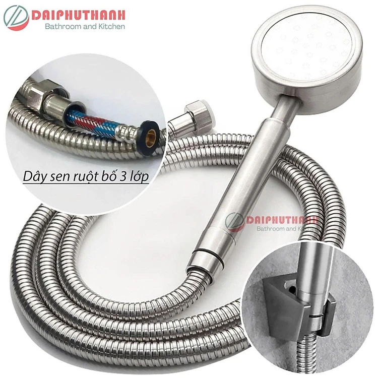 Bộ Tay Sen Tắm Inox SUS304 KZ-TS04TD Tay Sen Tăng Áp Dây Inox 1m2 Ruột Bố 3 Lớp - Đủ bộ tay cầm, dây, gác,..