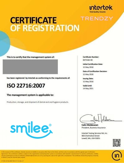 Được hiệp hội nha khoa Hoa Kỳ đồng ý và phê duyệt phân phối. Hàng trăm Beauty Blogger và hàng nghìn người tiêu dùng Việt Nam đã sử dụng Kit tẩy trắng răng tại nhà Smilee để tự làm trắng răng tại nhà chỉ với 20 phút mỗi ngày. Răng của bạn sẽ trắng đều lên từ 3 đến 6 tone !
