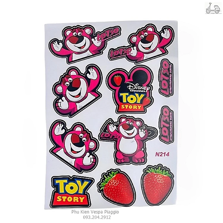 Bộ Tem Gấu Dâu Hồng Chống Nước Dán Lên Mọi Bề Mặt