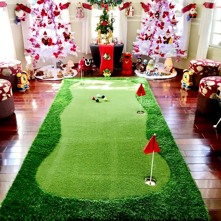 - Kiểu dáng thảm tập putt golf mô phỏng bề mặt sân golf thật với các đường cong uốn lượn tinh tế và đẹp mắt. Phần xung quanh của thẩm là viền cỏ nhân tạo với độ dày tốt giúp giữ cho những cú putt rất khó bay ra khỏi thảm.