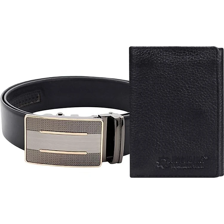 Bộ Thắt Lưng Và Ví Nam Da Bò Huy Hoàng HT4126-HT3137 - Đen