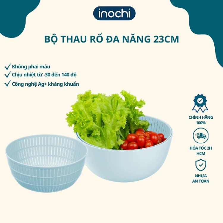 Bộ Thau Rổ Nhựa Đa Năng Cao Cấp Yoko Inochi Nhật Bản - Kháng khuẩn khử mùi đảm bảo an toàn vệ sinh thực phẩm - Chính Hãng ( Tặng kèm khăn lau pakasa)