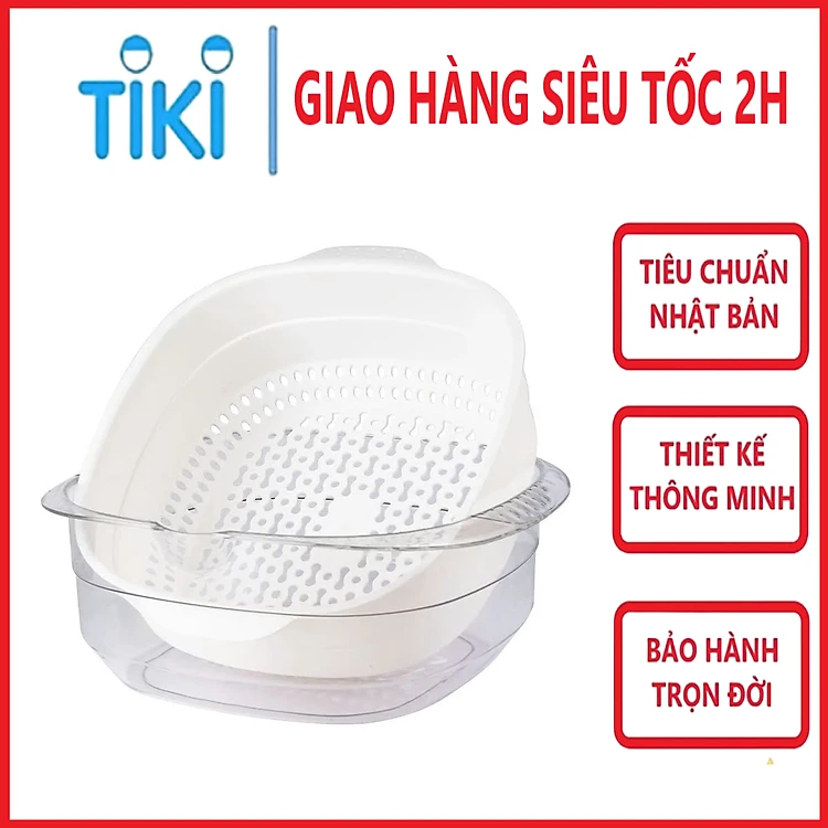 Bộ thau rổ vuông trong HOKORI nhựa VIỆT NHẬT cao cấp - Rửa rau củ quả, trộn thực phẩm - Hàng chính hãng