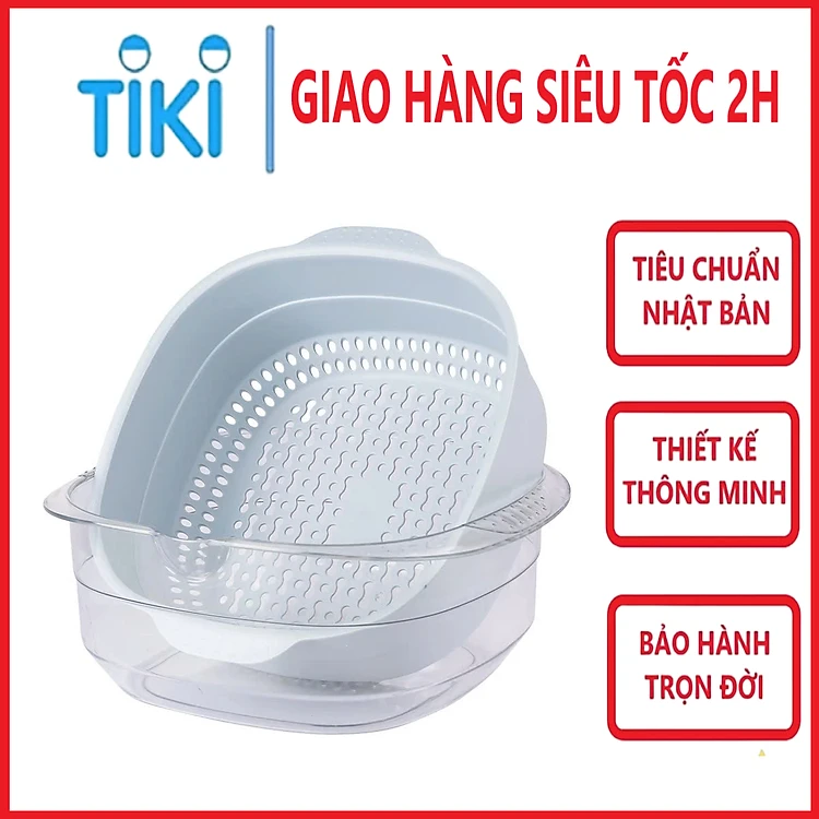 Bộ thau rổ vuông trong HOKORI nhựa VIỆT NHẬT cao cấp - Rửa rau củ quả, trộn thực phẩm - Hàng chính hãng