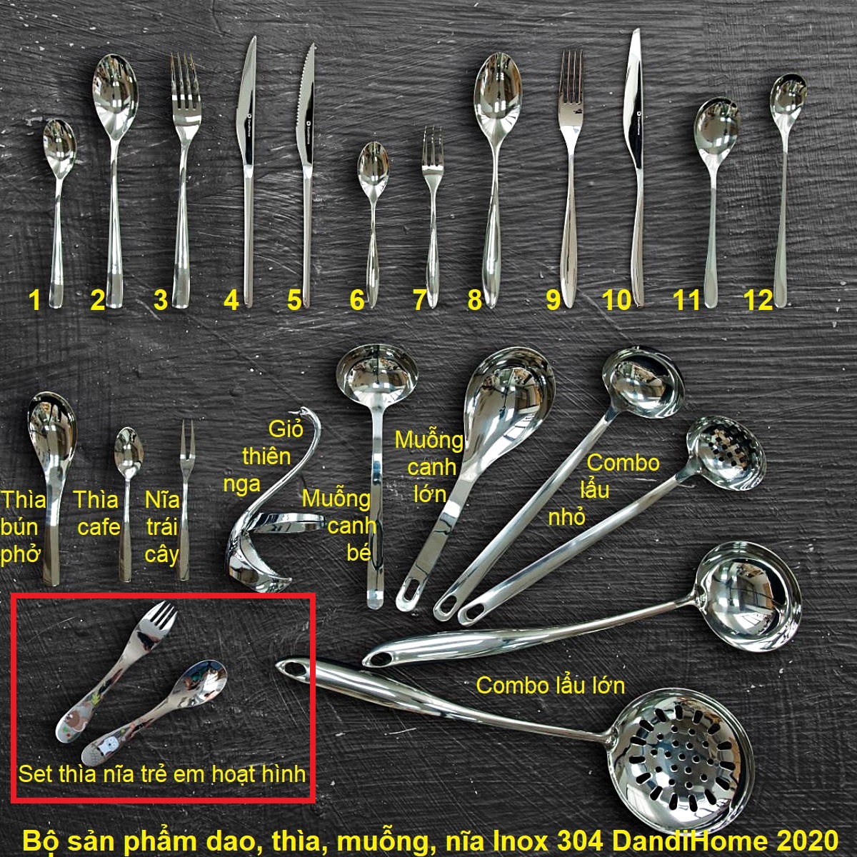 Sản phẩm bộ thìa nĩa trẻ em hoạt hình Inox 304 là một trong những sản phẩm mới nhất trong bộ dụng cụ bàn ăn cao cấp của DandiHome 2020: