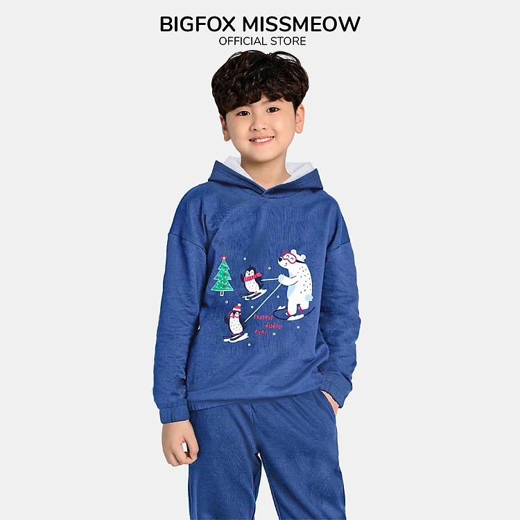 Bộ thu đông bé trai Bigfox Miss Meow, bộ nỉ bé trai vải nỉ bông dày dặn in gấu trắng Bắc Cực size trẻ em 3,4,5,...8 tuổi