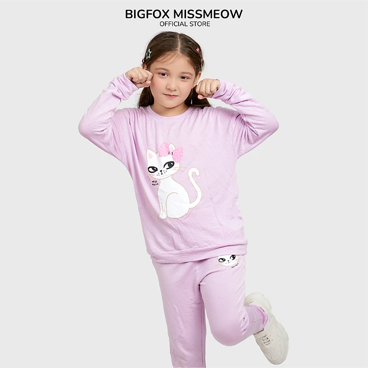 Bộ thu đông cho bé gái Bigfox Miss Meow dài tay chất nỉ, da cá style Hàn Quốc dễ thương size đại trẻ em 3,7,11 tuổi 30kg