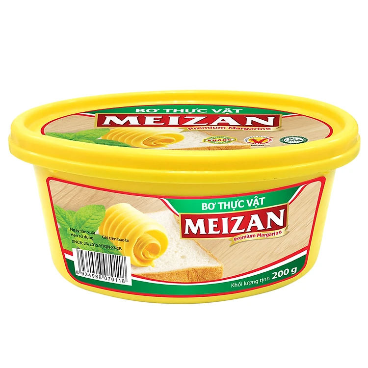 Bơ Thực Vật Meizan (200g) - Mỗi bữa ăn của bạn sẽ trở nên thơm ngon và bổ dưỡng hơn nếu được bổ sung thêm 1 ít bơ thực vật. Bơ gồm các thành phần có chiết xuất hoàn toàn từ thiên nhiên, được sản xuất dưới sự giám sát nghiêm ngặt, không chứa các chất độc hại, đảm bảo an toàn cho sức khỏe của người dùng.