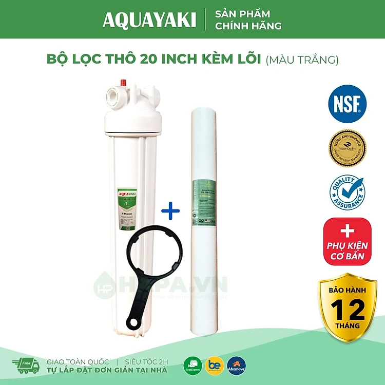 Cốc Lọc Thô 20 inch AQUAYAKI AQUA-S201 Cao Cấp, Bộ Lọc Nước Đầu Nguồn, Sinh Hoạt Gia Đình 20in - Hàng Chính Hãng