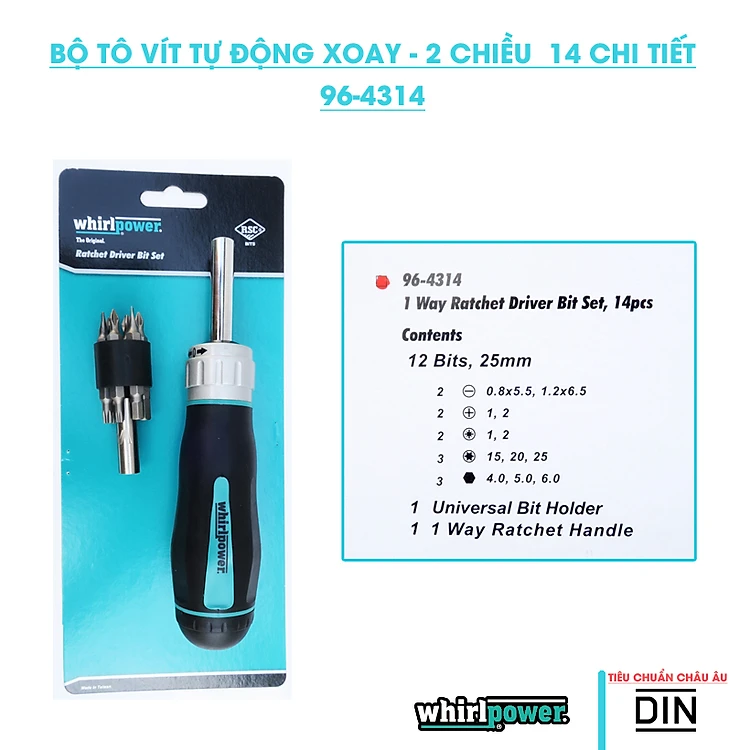 Bộ tô vít tự động xoay 2 chiều 14 chi tiết Whirlpower 96-4314