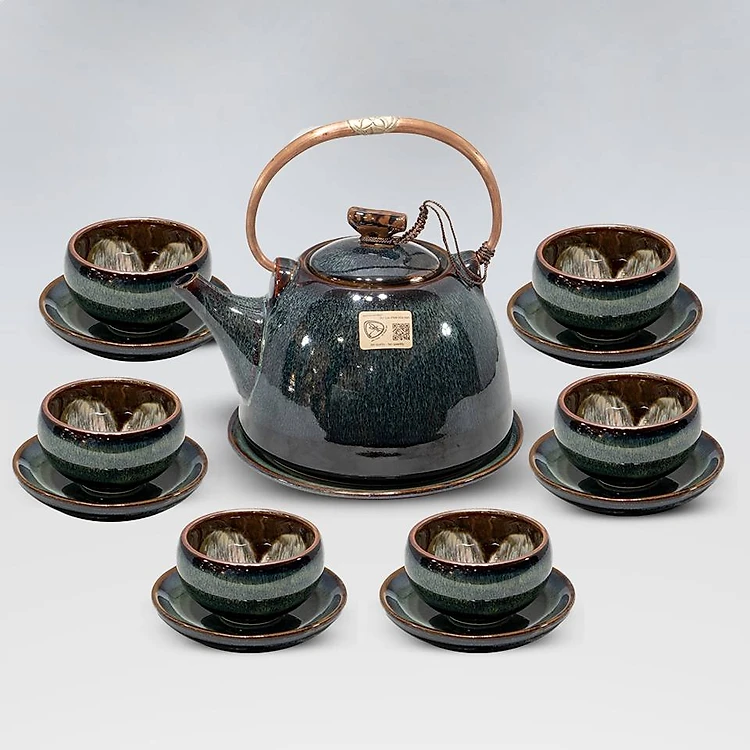 Bộ trà cao cấp men hoả biến hoa nở lòng ( dáng vuốt)
