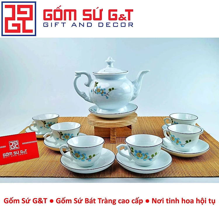 Bộ trà cát tường vẽ hoa đào xanh Gốm Sứ G&T