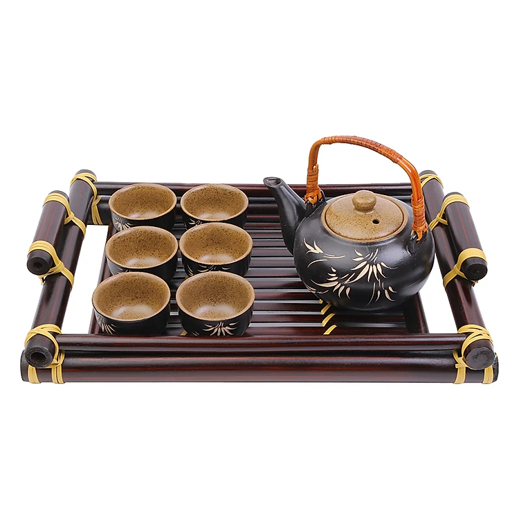 Bộ Trà Đức Gốm Sứ Bát Tràng T747 - Khay Nâu