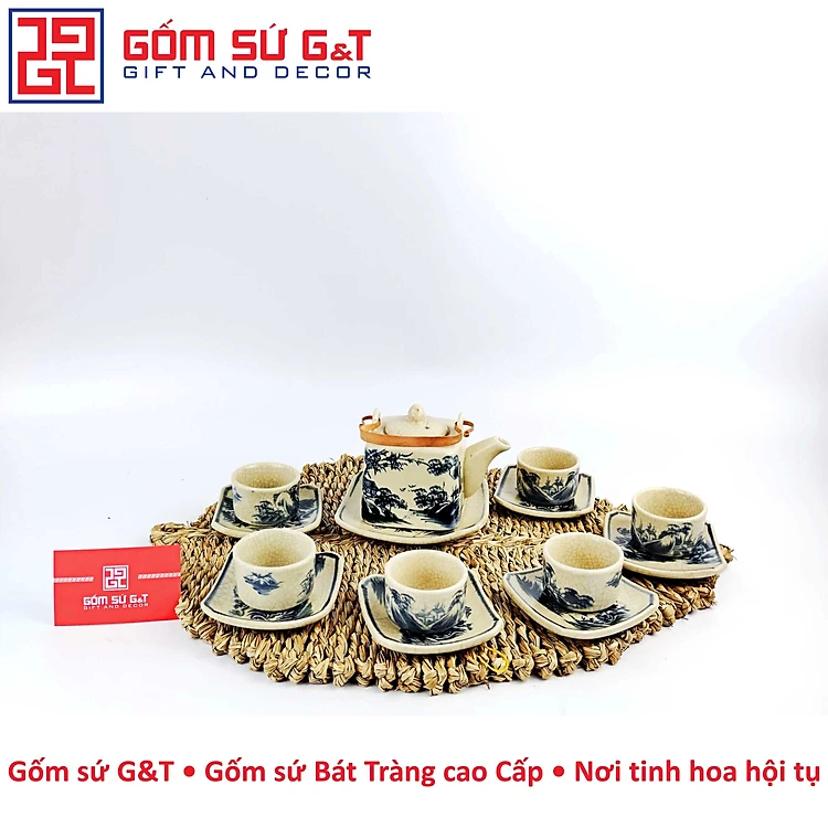 Bộ trà vuông sơn thủy men rạn Gốm Sứ G&T
