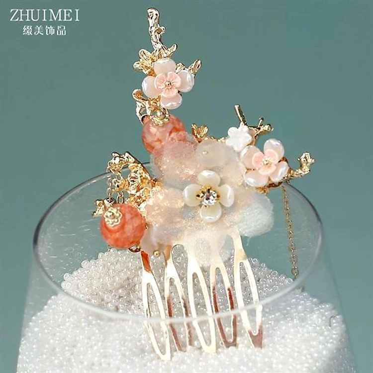 Bộ trâm cài tóc quý phi hồng ba món kèm bông tai 4-2021 Giangpkc sp220705