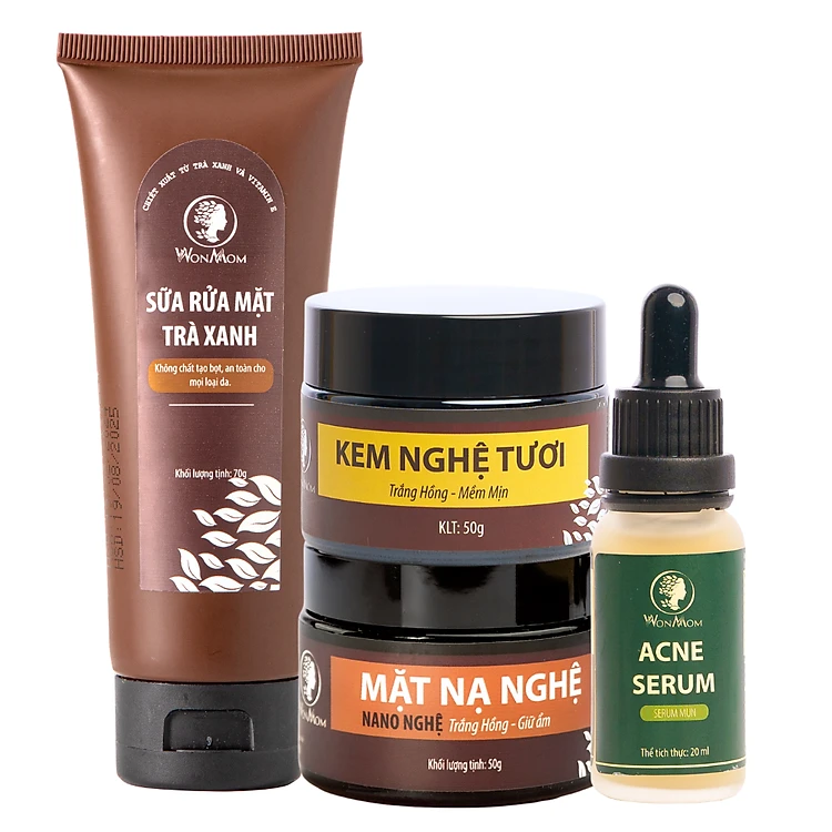 Bộ trắng da, sạch mụn nám toàn diện Wonmom (Sữa rửa mặt+Kem nghệ tươi+Serum mụn+Mặt nạ nghệ)