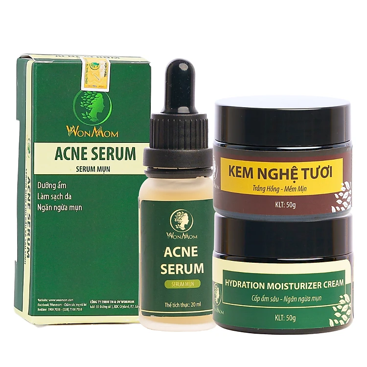 Bộ trắng da, sạch mụn và nám cơ bản ngày đêm Wonmom (1 Kem nghệ tươi + 1 Serum mụn + 1 Kem cấp ẩm