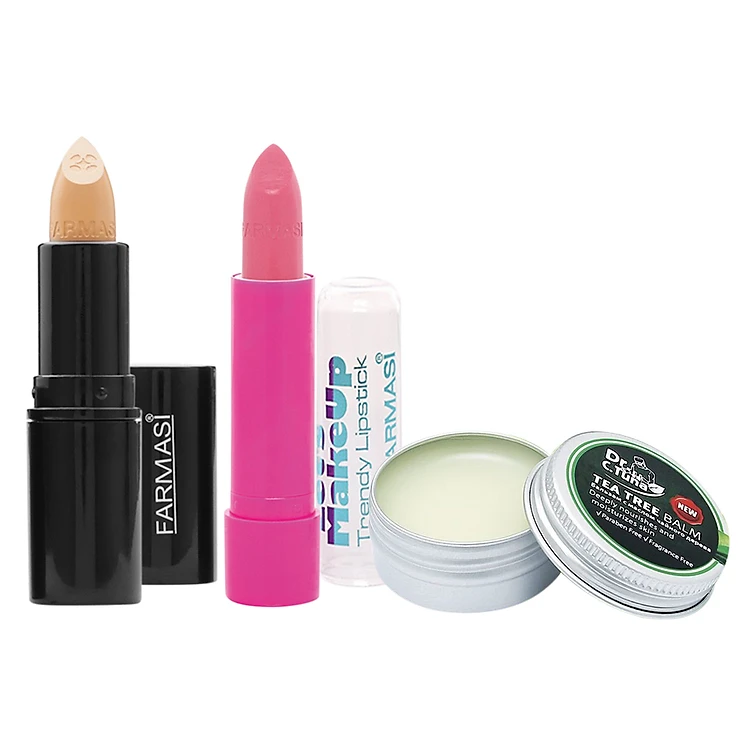 Bộ Trang Điểm Farmasi 02 - Son môi c hứa dầu dưỡng ẩm vì vậy nó giúp môi bạn trở nên nhẹ và mềm hơn, khi son se khô thì mịn như lụa, tự nhiên như màu môi thật. Son che khuyết điểm đem lại độ mềm mịn, tuyệt vời hoàn hảo cho làn da.Sản phẩm có độ che phủ tốt, không bị trôi trong quá trình sử dụng. Sáp dưỡng môi là sản phẩm dưỡng ẩm giúp phục hồi da khô, da nứt nẻ. Chiết xuất tinh dầu cây trà Úc với các thành phần hoàn toàn từ tự nhiên không chứa hóa chất, an toàn ngay với những làn da nhạy cảm nhất.