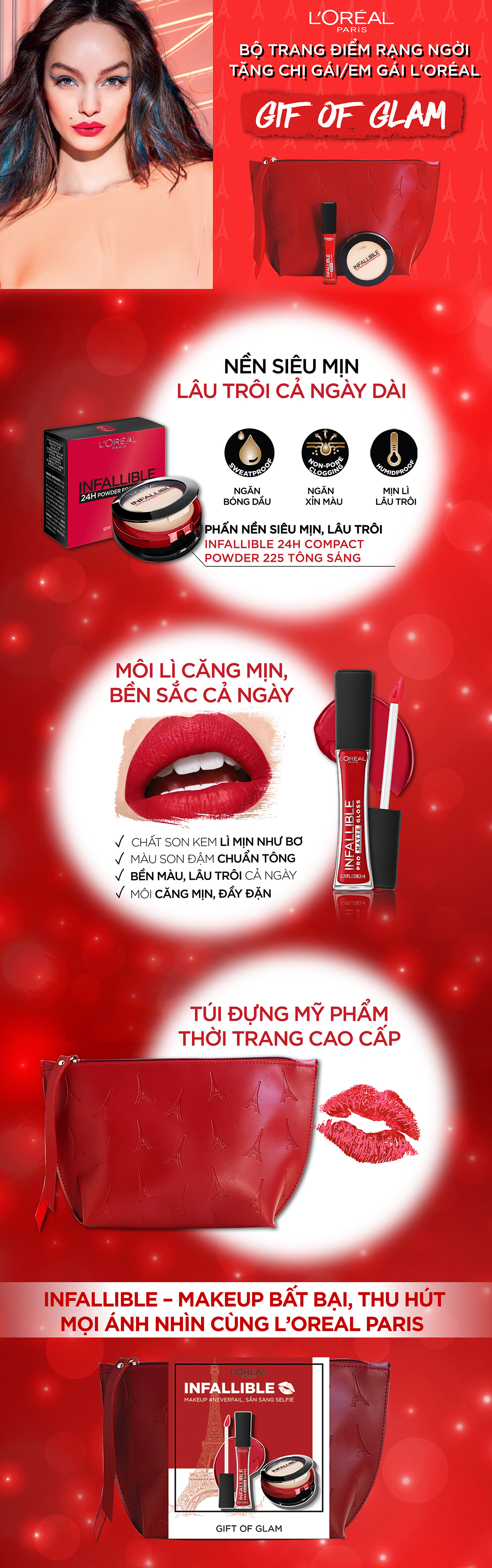Bộ Trang Điểm Rạng Ngời Tặng Chị Gái/Em Gái L'oreal là bộ sản phẩm với tông màu tự nhiên, lâu trôi với các sản phẩm như phấn nền và son là những sản phẩm cơ bản và không kém phần quan trọng góp phần làm nên nét tươi tắn cho phái đẹp.
