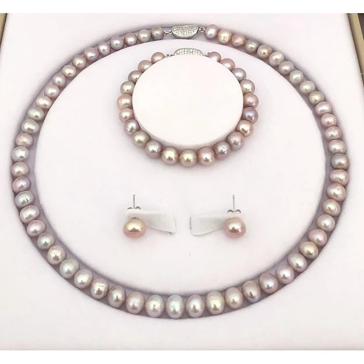 Bộ trang sức 3 món: chuỗi đeo cổ, vòng tay, bông tai kèm theo hộp da sang trọng.