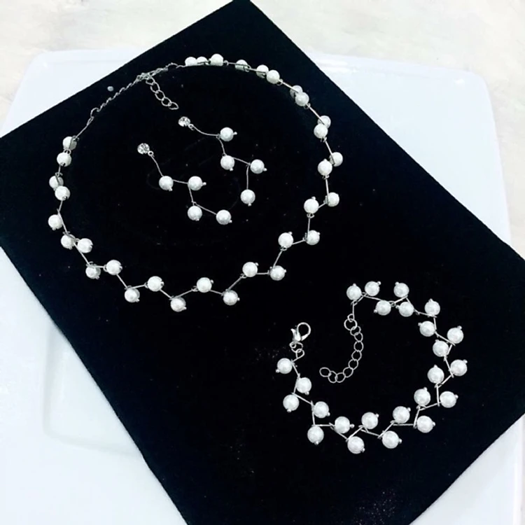 Bộ trang sức 3 món vòng cổ, vòng tay và bông tai ngọc trai zic zac phong cách thời trang Hàn Quốc
