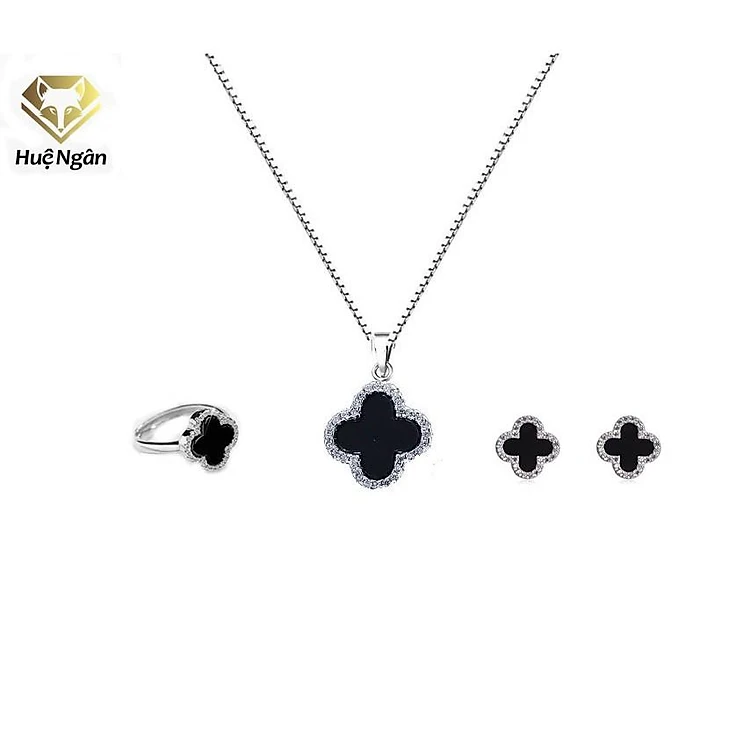 Bộ trang sức dây chuyền , nhẫn và bông tai bạc Ý 925 Huệ Ngân - Cỏ bốn lá may mắn PP1511-RYE140928-RR1549