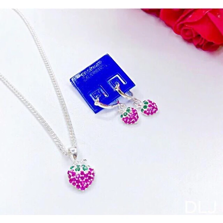 Bộ trang sức quả dâu cho bé gái được thiết kế với chất liệu bạc cao cấp