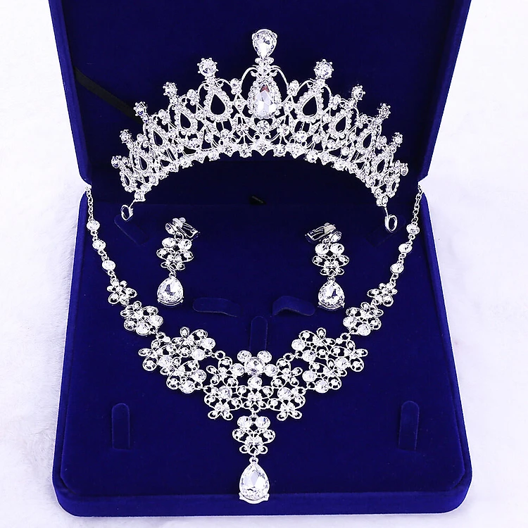 Bộ trang sức vương miện cô dâu, vòng cổ và bông tai full đá lấp lánh