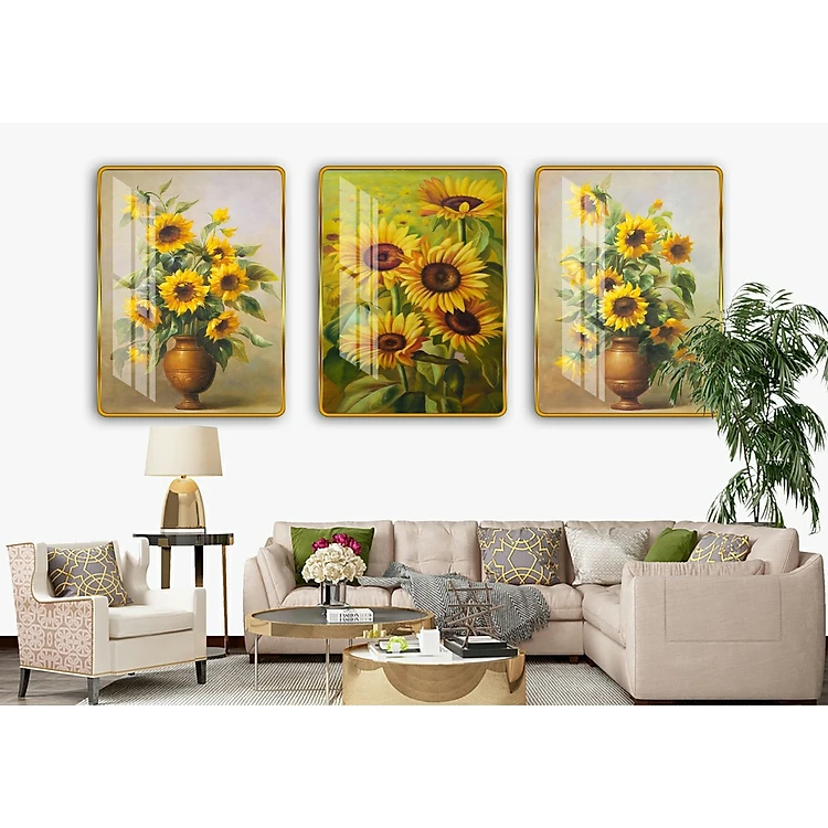 Bộ tranh 3 Bức - Tranh treo tường phòng khách- Tranh Hoa 3D Hiện Đại H 38334/Gỗ MDF cao cấp phủ kim sa/ Chống ẩm mốc, mối mọt/Bo viền góc tròn