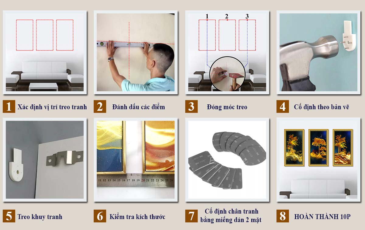 - Hướng dẫn treo tranh với kích thước cụ thể và mô tả chi tiết.