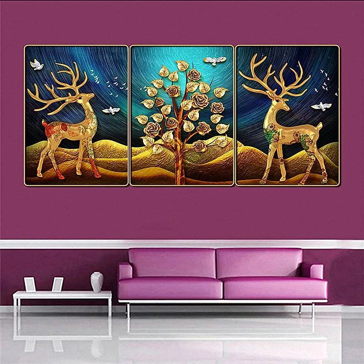 Bộ tranh treo tường 3 tấm trang trí phòng khách, phòng ngủ phong cách mỹ thuật hiện đại chất liệu cán pvc gương:4419L15S