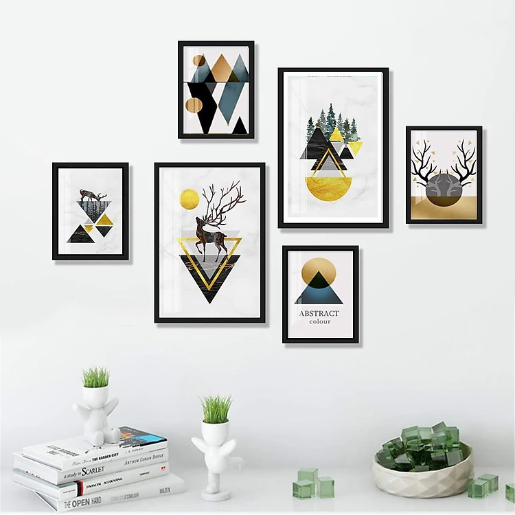 Bộ Tranh treo tường phong cách BẮC ÂU, TỐI GIẢN 6 bức tặng kèm khung màu đen tranh đơn giản ,hiện đại , Tặng kèm khung và đinh ba chân treo tranh chuyên dụng PVP-TP1522